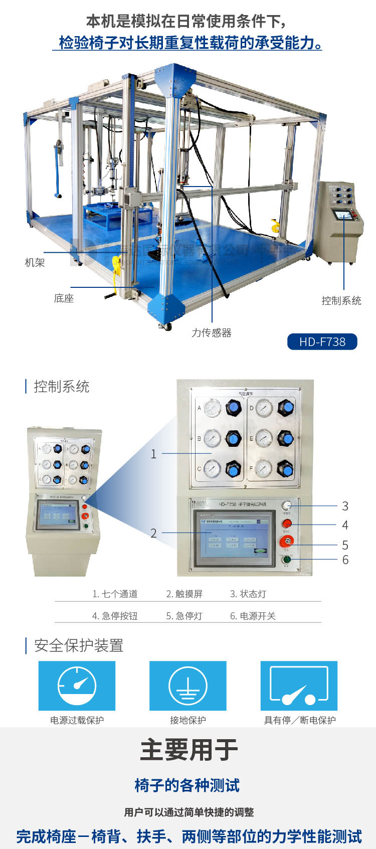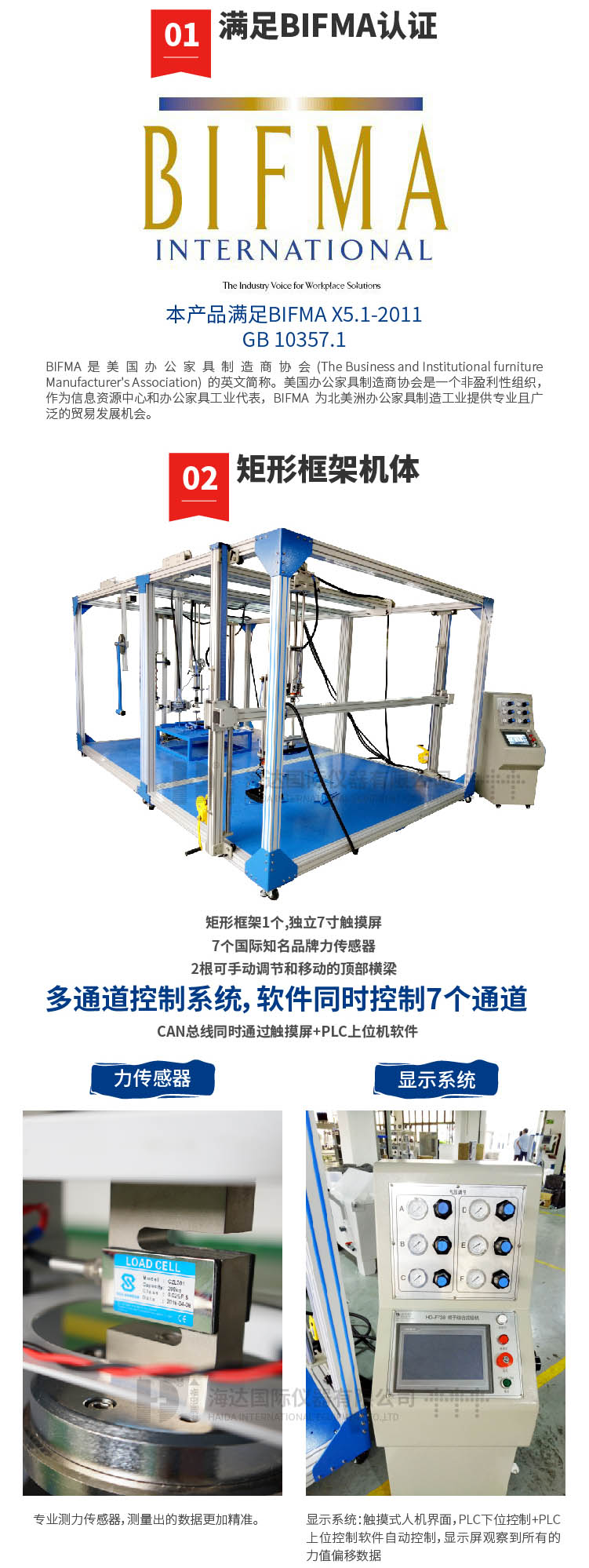 椅子綜合測(cè)試儀在同一臺(tái)試驗(yàn)機(jī)上可以進(jìn)行椅子的各種測(cè)試,用戶可以通過簡(jiǎn)單快捷的調(diào)整,完成椅子椅座-椅背、扶手、兩側(cè)等部位的力學(xué)性能測(cè)試。 設(shè)計(jì)標(biāo)準(zhǔn):1.Bifma x5.1-2011 2.GB 10357.1 | ||