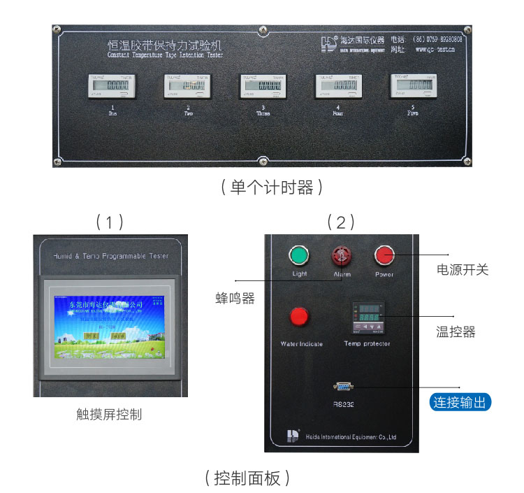 恒溫恒濕膠帶保持力試驗機HD-C528主要用于測試試樣的抗粘連性,測試壓敏膠帶持粘性,靜態負荷試驗。將膠帶粘于試驗板上, 下端懸掛標準荷重,經一段時間自動計時后, 測量膠帶下滑距離或膠帶粘著時間用來評定膠帶粘著的持久性。 設計標準:GB/T2423.1-4, GJB150A1/4,IEC68-2-30,GB/T4851 |