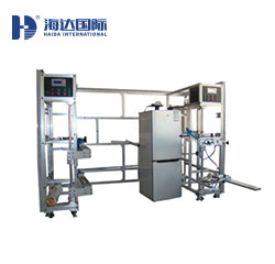 立式冰箱門測試儀箱門測試儀適用于對柜門進行開閉能力壽命試驗,采用氣動式驅動方式,利用氣缸座動力,帶動伸縮連桿作往復直線運動,從而完成對柜門的推拉往復動作,操作簡單,控制方便。