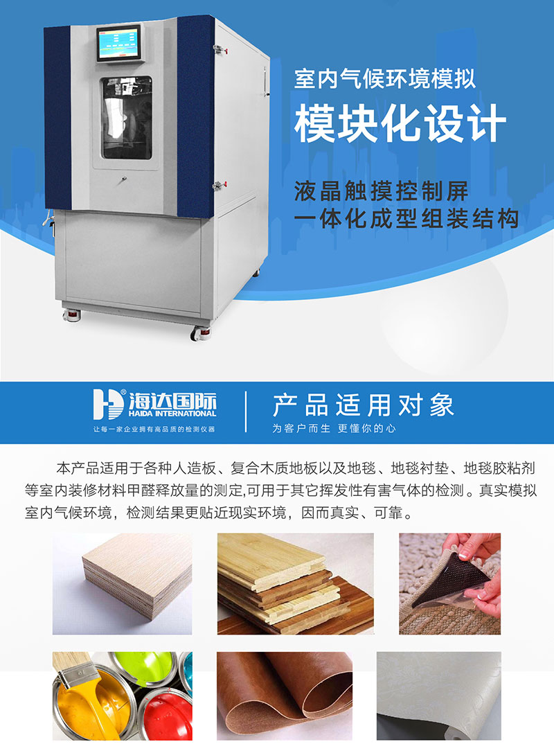 甲醛試驗箱(1個立方)適用于各種人造板、復合木質(zhì)地板以及地毯、地毯襯墊及地毯膠粘劑等室內(nèi)裝修材料甲醛釋放量的測定、木材或人造板的恒溫、恒濕平衡處理,也可用于其它建材中揮發(fā)性有害氣體的檢測。該產(chǎn)品特點在于可大限度的模擬室內(nèi)氣候環(huán)境,檢測結(jié)果更貼近現(xiàn)實環(huán)境,因而真實、可靠。 工作原理: 將1平方米表面積的樣品放人溫度、相對濕度、空氣流速和空氣置換率控制在一定值的氣候箱內(nèi)。甲醛從樣品中釋放出來,與箱內(nèi)空氣混合,定期抽取箱內(nèi)空氣,將抽出的空氣通過盛有蒸餾水的吸收瓶 ,空氣中的甲醛全部溶入水中;測定吸收液中的甲醛量及抽取的空氣體積,用毫克每立方米(mg/m³)表示,計算出每立方米空氣中的甲醛量。取樣是周期性的,直到測試箱內(nèi)甲醛濃度達到平衡狀態(tài)。 設(shè)計標準: 1、GB18580—2017 《室內(nèi)裝飾裝修材料 人造板及其制品中甲醛釋放限量》 2、GB18584 《室內(nèi)裝飾裝修材料木家具中有害物質(zhì)限量》(審批稿) 3、GB18587—2001 《室內(nèi)裝飾裝修材料地毯、地毯襯墊及地毯膠粘劑有害物質(zhì)釋放限量》 4、GB17657—2013 《人造板及飾面人造板理化性能實驗方法》 5、GB50325—2010(2013 年板)《民用建筑工程室內(nèi)環(huán)境污染控制規(guī)范》 6、ASTM D6007—02《小尺度環(huán)境箱測定木制品釋放氣體中甲醛濃度的標準測試方法》 7、LY/T 1612-2004《甲醛釋放量檢測用1m3氣候箱》 8、SZJG 52-2016《家具成品及原輔材料中有害物質(zhì)限量》 9、GB/T 2912.1-2009 《紡織品 甲醛的測定 第1部分:游離和水解》 10、GB/T 2912.2-2009 《紡織品 甲醛的測定 第2部分:釋放的甲醛(蒸汽吸收法)》 11、GB/T 2912.3-2009 《紡織品 甲醛的測定 第3部分:液相色譜法》 | ||