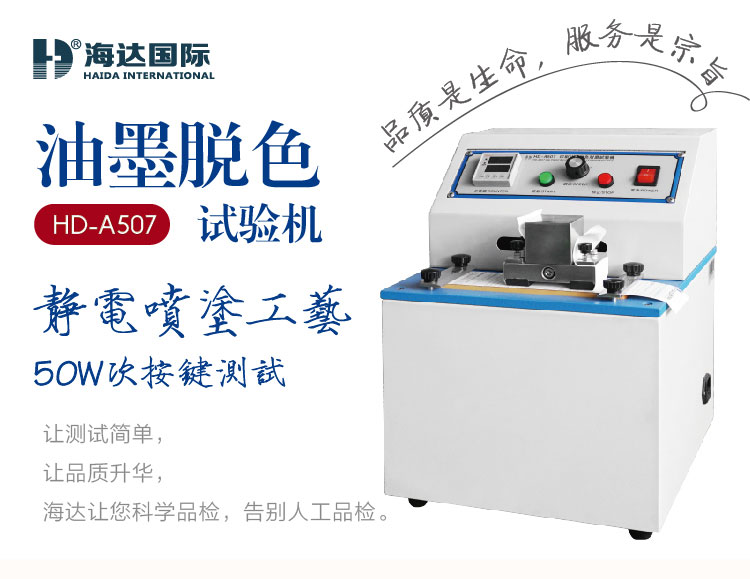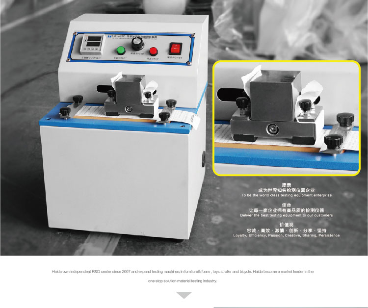 油墨脫色試驗機用來測試油墨粘著力,以此來判斷油墨的好壞.本機可做干磨測試,濕磨測試,脫色變化測試,紙張模糊測試及特殊磨擦測試。墨跡耐磨測試是為評估紙張或紙板上墨跡的耐磨損或耐磨擦力而設計的測試方法。 設計標準:JIS-5071-1,TAPPI-UM486,GB7706 | ||