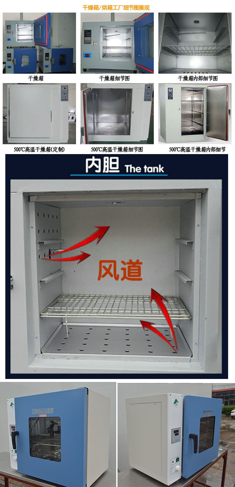 型號內膽材質內箱尺寸功率(w)HD-E804-25碳鋼25*25*25CM600HD-E804-25S 不銹鋼25*25*25CM600HD-E804-35 碳鋼35*35*35CM1300HD-E804-35S 不銹鋼35*35*35CM1300HD-E804-45 碳鋼45*45*35CM1800HD-E804-45S 不銹鋼45*45*35CM1800HD-E804-55碳鋼55*55*45CM2800HD-E804-55S 不銹鋼55*55*45CM2800HD-E804-75S 不銹鋼75*60*50CM4000HD-E804-100S 不銹鋼100*80*80CM6500 其他可按要求定制 1、溫度范圍:常溫~250℃ , 2、波動度±2℃ 3、精度:±1% 電熱絲:3KW,4KW 4、馬達:1/4HP 5、電源:1∮,AC 220V,14.5安;1∮,AC 220V,19A 6、干燥箱材質:內膽為碳鋼/不銹鋼,外箱為鋼板噴涂表面 7、溫度設定方式:數顯式可調 | ||