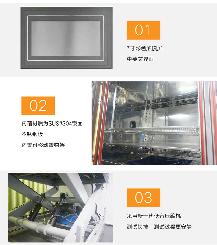 1、內箱尺寸(cm):80x70x90 ( HxWxD,可根據客戶需求更改) 2、外箱尺寸(cm):175x80x132 ( HxWxD,可根據客戶需求更改) 3、水平臺面(cm):400x400 (可根據客戶需求更改) 4、垂直臺面(cm):400x400(可根據客戶需求更改) 5、溫度范圍:-70℃~150℃(S), -40℃~150℃(L),-20℃~150℃(R) 6、濕度范圍:20%~98%R.H (10%~98%R.H;5%~98%R.H為特殊選用條件) 7、溫/濕穩定度:±0.5℃, ±2% 8、溫/濕均勻度:±1℃, ±2% 9、溫.濕度偏差:≤±2℃/ ±3%RH 10、升溫時間:約3~4℃/min. 11、降溫時間:約0.7℃~1℃/min (特殊要求可定做:快溫變型5℃~25℃/min,線性/非線性可調) 12、內箱材質:SUS 304# 8K鏡面不銹鋼板 13、外箱材質:上等冷軋鋼板,表面防銹處理后靜電噴塑 14、保溫材料:聚氨酯泡沫+玻璃纖維 15、控制器: A 系統:自主研發溫濕度控制系統 B 顯示屏:7英寸,800x480點陣真彩LCD觸摸屏. C 設定方式:中英文菜單(切換),觸摸屏輸入方式. D 程序容量:250組/12500段/每組32000次循環. E 顯示分辨率:溫度0.1℃,濕度0.1%RH,時間1S. F 溫度測量:PT100鉑金電阻. G 濕度測量:干濕球. H 通訊功能:標配:USB,RS-232C接口, 選配:遠程操控功能. I 記錄功能:采樣周期3S到60S任意設定. 16、冷凍系統: A 系統:法國(泰康)全封閉壓縮機組或德國(比澤爾)半封閉式壓縮機 B 制冷劑:環保冷媒: 單級上等R-404A, 復疊二級R-23 C 冷卻:風冷或水冷 17、供水系統: A 供水方式:磁力泵供水 B 儲水容量:30L C 試驗用水:去離子水或蒸餾水 18、加熱系統:不銹綱鰭片式加熱管加熱空氣方式 19、加濕系統:不銹鋼護套式電熱蒸氣發生方式.(特點:密封性能極好,有效防止蒸汽流失) 20、保護裝置:壓縮機超壓、過載、過熱、過流保護;超溫保護;漏電保護;風機過載保護;相序保護;加濕干燒保護;水箱缺水警報系統 21、標準配置:視窗;視窗觀測燈;測試孔(¢50x1只); 試料架(2組); 超溫保護器; 時間信號接口 22、選配件:有紙或無紙記錄儀;特殊規格測試孔;特殊規格樣品架;10寸液晶觸摸屏 23、電源:AC3¢5W380V50HZ