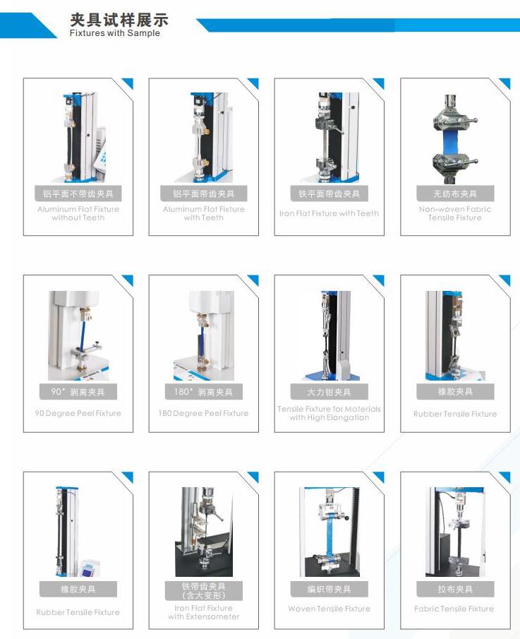 5、對與成品及半成品的檢測,需要的夾具則是五花八門,如何個性化滿足客戶要求,對所有試驗機廠家來說,都是一個挑戰(zhàn)。