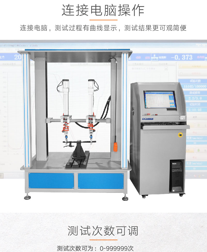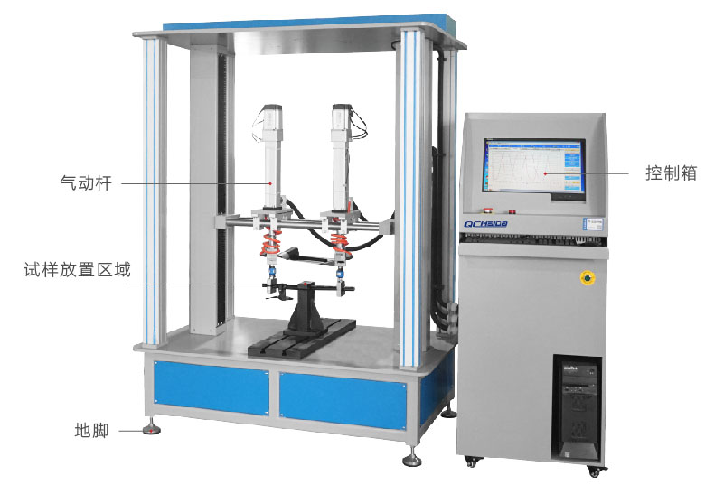滑板車車把動態(tài)疲勞試驗機HD-J247A-S模擬自行車在實際騎行過程中,在不同的路況下,車把組件會受到人手給予的不同方向的力,尤其是在較顛簸路面上騎行時,受到的力就比較大和頻繁,因此車把組件的質(zhì)量好壞關系到整個車子的使用安全性和使用方便快捷性。本試驗機是根據(jù)EN14764、EN14766和EN14781相關疲勞試驗相關標準設計,整個試驗系統(tǒng)通過計算機自動控制,力量的施加系統(tǒng)采用力閉環(huán)控制,當施加在車把上的試驗力達到設定的力量時自動返回換向。 設計標準:滿足ISO 4210-5-2014 (ISO標準) 4.9 一和二階段加載方式 試驗方法:試驗時將車把組件按照標準規(guī)定的方法固定在試驗機上,加載橫梁的高低位置可以通過手動調(diào)節(jié)來適應車把立管的大?。粚④嚢蚜⒐埽ɑ蚣偈景蚜⒐埽┕潭ㄔ趯S脢A具上,調(diào)整加載氣缸的上下、左右位置,使加載夾具可以剛好裝配在把橫管上,固定好各個部分。在計算機上設定好試驗要求的試驗力值、次數(shù)。調(diào)整好允許車把的Z大變形量,超過此變形量后機臺會自動停止測試;啟動試驗程序開始測試,試驗達到設定次數(shù)或試件損壞,機臺自動停止測試并保留試驗結(jié)果。 |